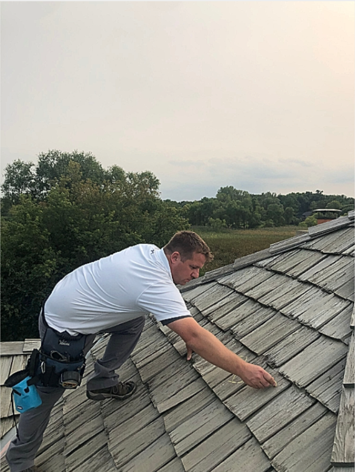 - ZFREE roof inspection followed by an accurate cedar shake estimate